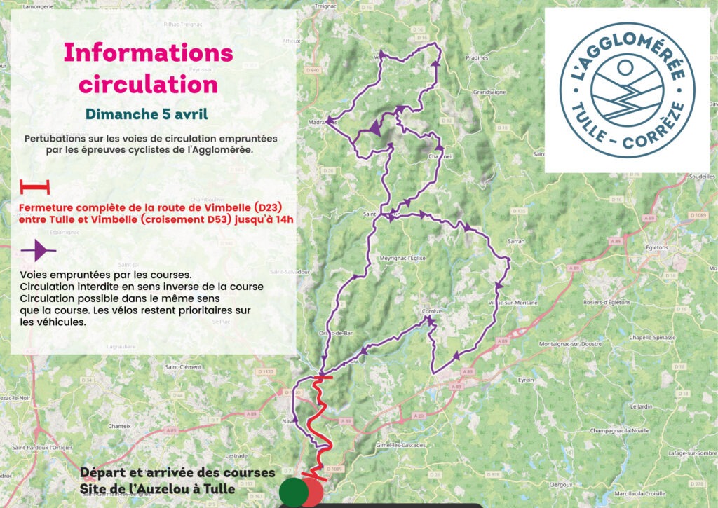Dimanche 5 avril, la circulation sur le secteur de l’Auzelou à Tulle et le nord du territoire sera impactée par l’Agglomérée. Zoom sur les zones perturbées et les déviations proposées.